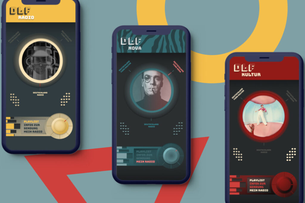 Für das Design der App übertrug ich Elemente des Produktdesigns üblicher Retroradios auf das Interface der App. Im oberen Banner und auch in der Farbigkeit spiegelt sich ein Kultbezug zu den 80ern wieder – Nostalgie wird so verbunden mit technischer Spielerei.